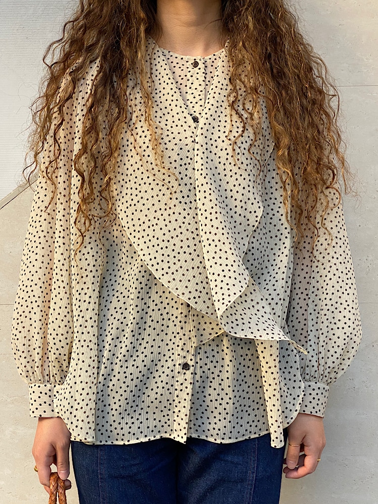 着心地:今回ボウタイをたらした状態で着用していますが、アレンジして頂くとまた違った雰囲気を楽しんで頂けます。