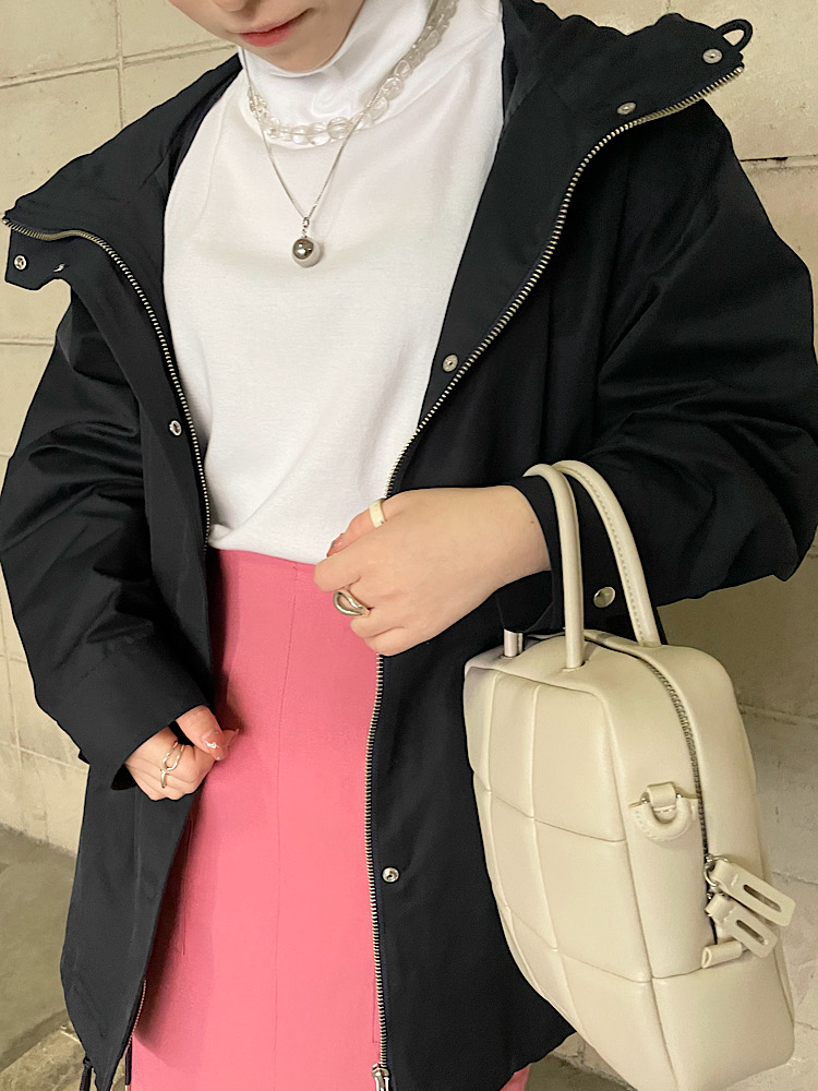 商品紹介:素材が柔らかく肌触りがよかったです。デザインがタートルネックにハーフスリーブで一癖あり1枚でも可愛いですし、中にカラー物のインナーなどをレイヤードしてもオシャレになります。