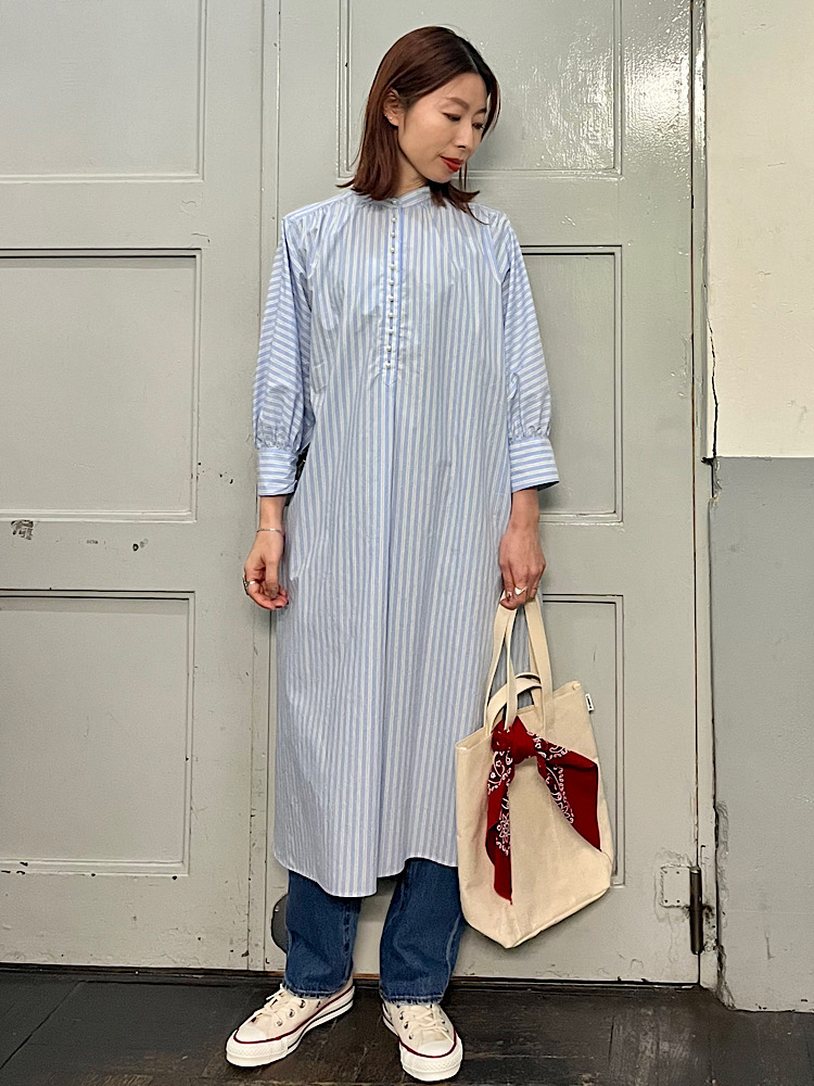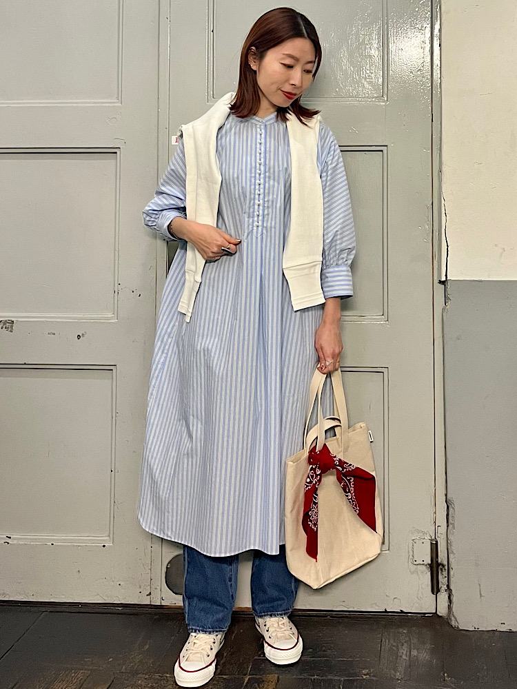 サイズ感:ゆったり。着丈は長過ぎないのでパンツ合わせでレイヤードを楽しめます。