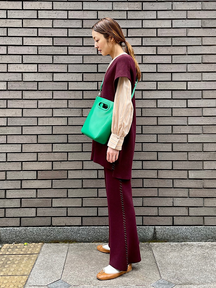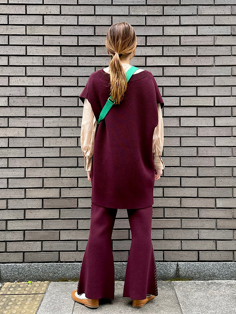 素材感・着心地:コットン素材のニット。やや厚みがあります。裾がフレアになっておりサイドのステッチも可愛いです