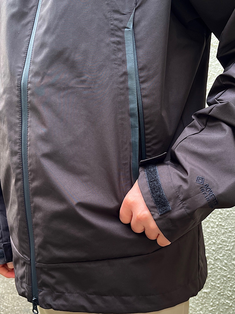 素材感/着心地:非常に軽く耐水性と防風性があります。止水ジップであったりフードが大きいので軽い雨の日でしたら、レインコートのようにお使い頂けます。