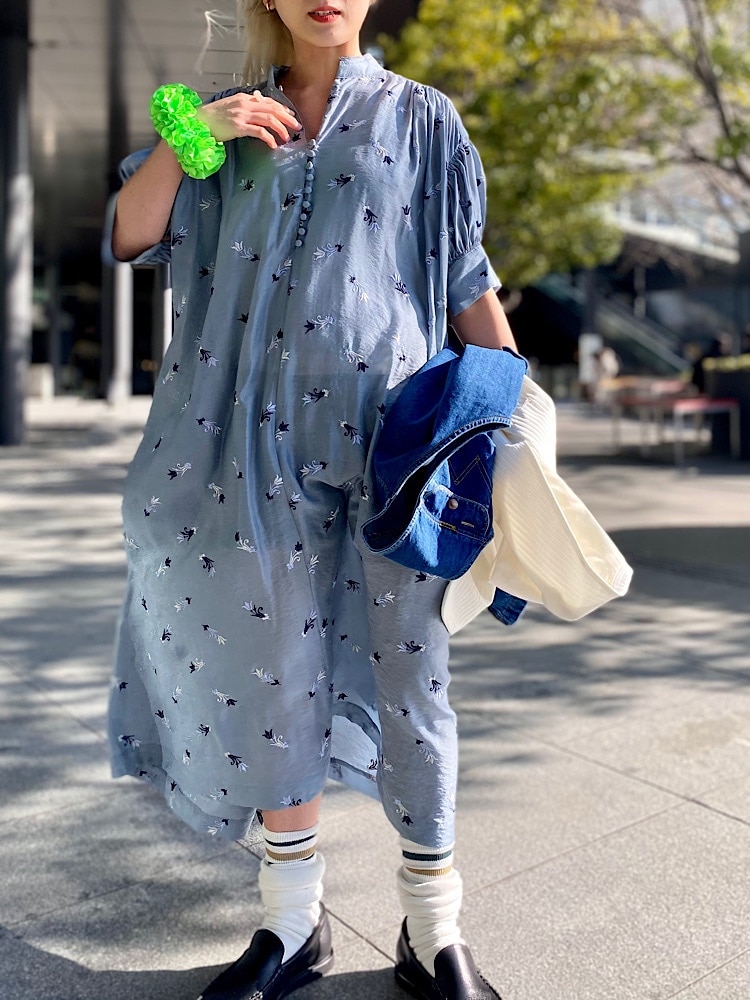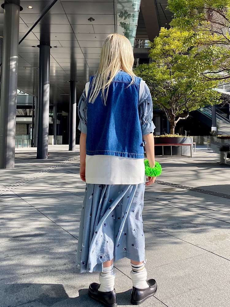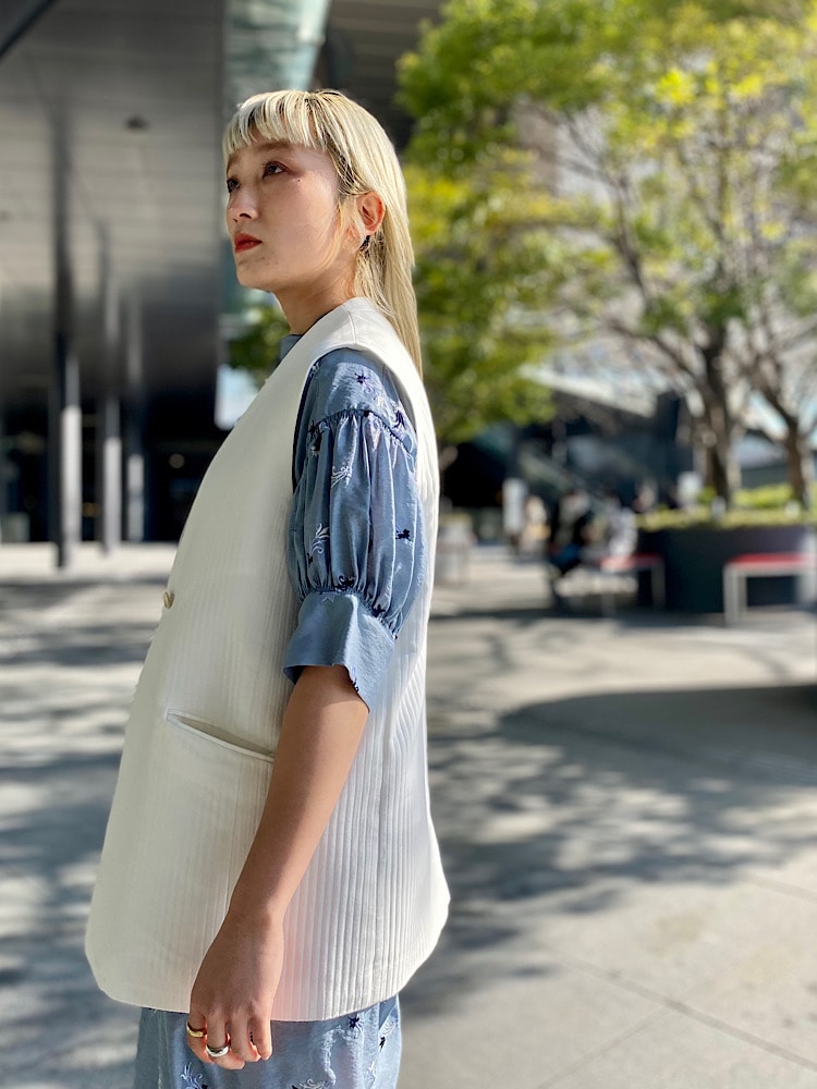 ・着こなしポイント : パフスリーブ・フラワー刺繍といった甘い印象ですが、合わせるアイテムや小物でカジュアルな着こなしにも