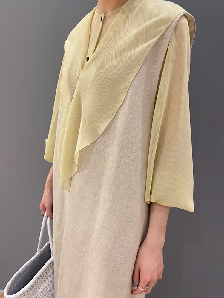 生地に表面感があり、一枚で着てもポイントになるブラウスです。
