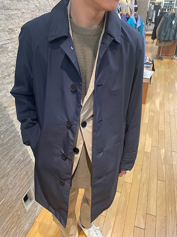 【素材感・着心地】GORE-TEX INFINIUMの生地で、軽量且つハリ感のある素材を使用しています。