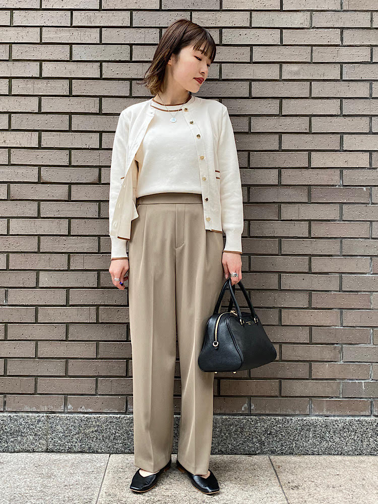 アンサンブルで着用し、オフィスカジュアルに仕上げました