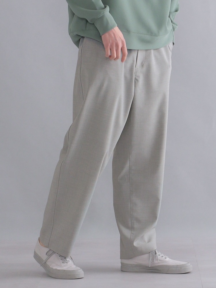機能素材のカットソーを使用したリラックス感のあるスタイリング。