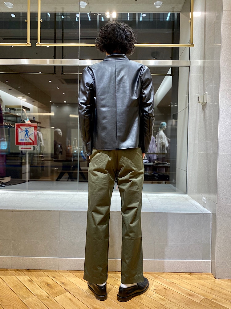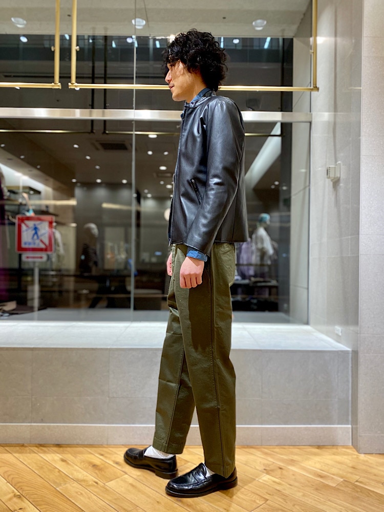 【素材感・着心地】光沢感のある生地で、上品にも無骨な感じにも使える
