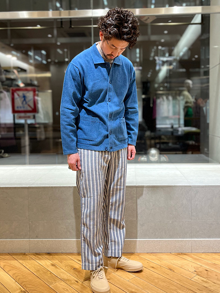 インディゴをベースカラーにしたワンマイルコーデ。