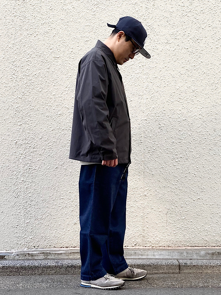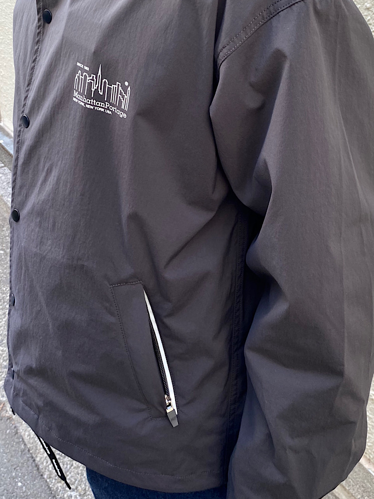 素材感/着心地:従来のコーチジャケットと比べ、丈がやや短くバランスが良いのが特徴です。またボディにコーデュラナイロンを使っており、マッドな質感と落ち着いた雰囲気が特徴です。