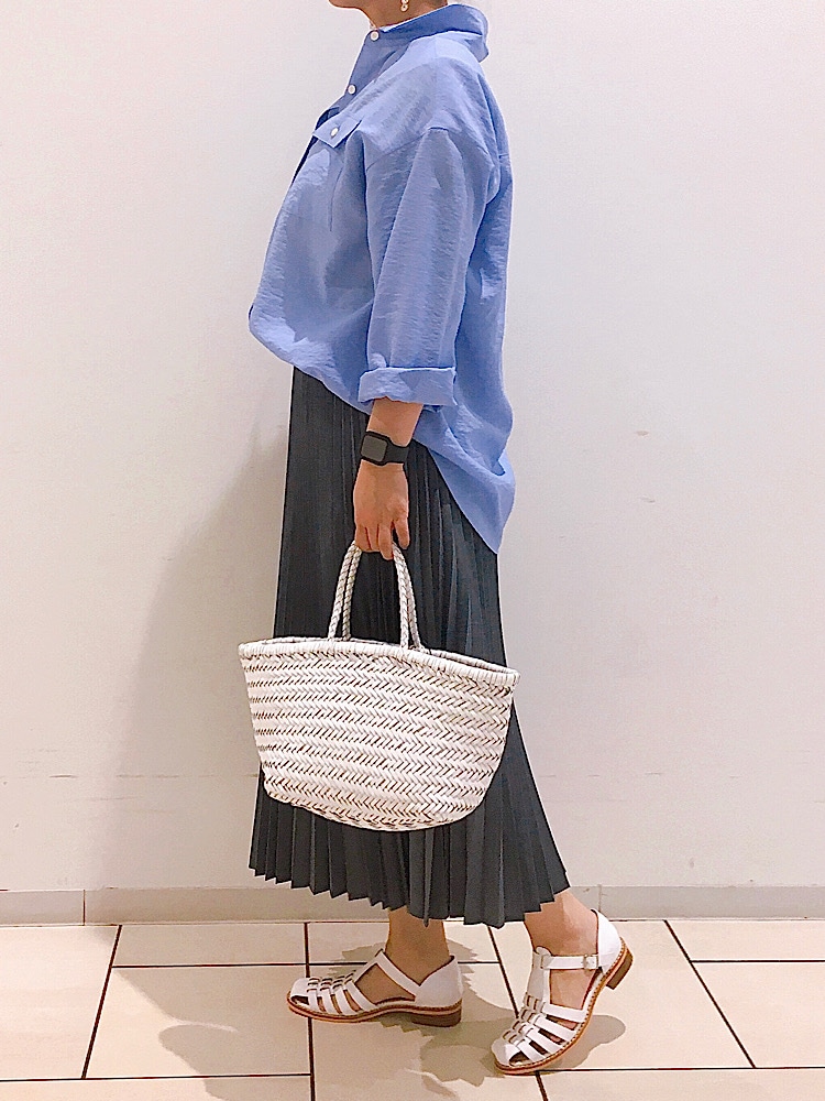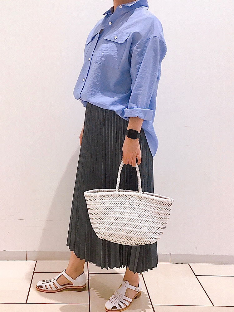 着心地:春らしいパステルカラーのブラウスは、シルクのような光沢とふわっとした柔らかさを兼ね備え、素材感がとても素敵です。素材はレーヨンナイロンなのでお家でのお洗濯が可能なのも嬉しいポイント。イタリアのMANTECO社の生地を使用しています。