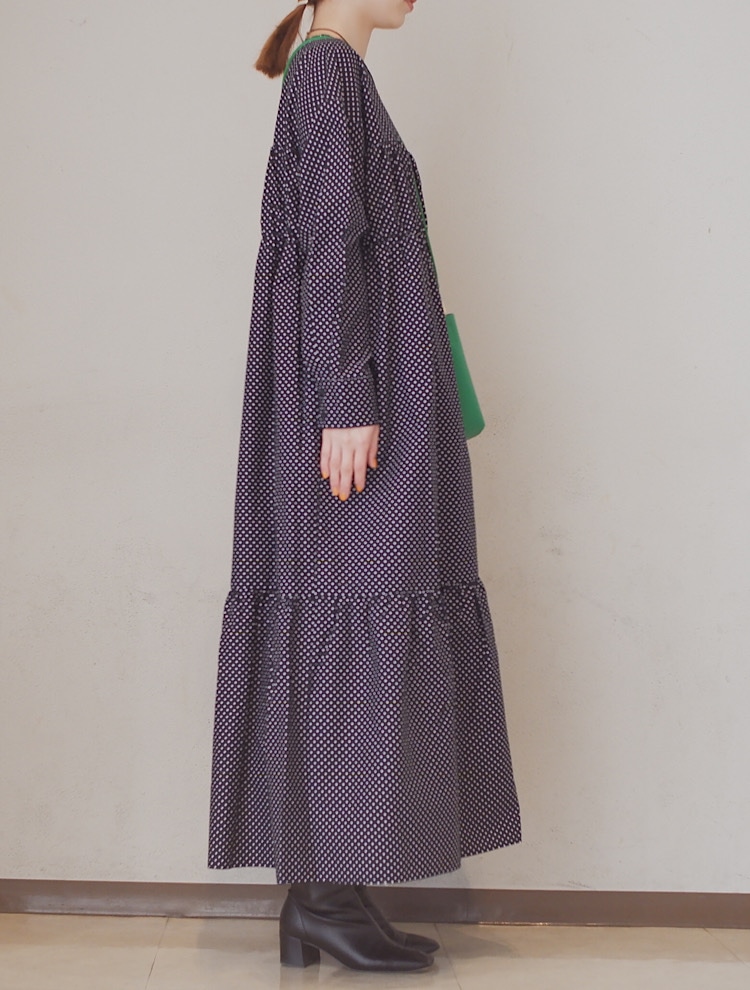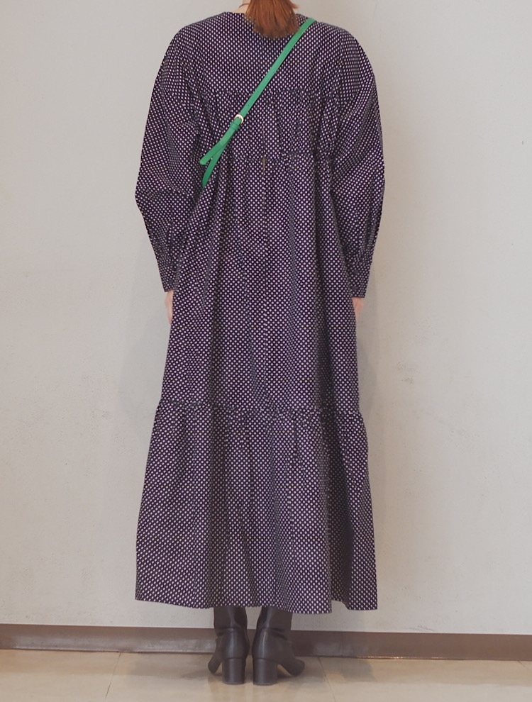シャツのようなパリッとした素材でボリューム感のあるワンピースです。一枚でもとても華やかなので普段使いはもちろん、ドレスアップにも着ていただける特別なワンピースです。