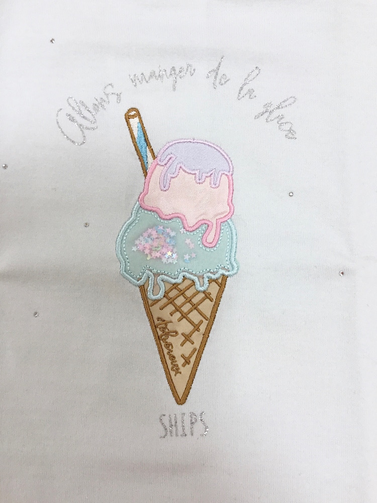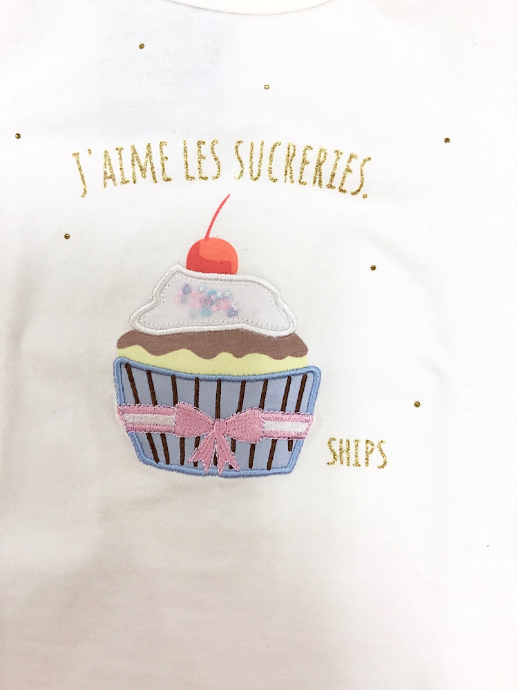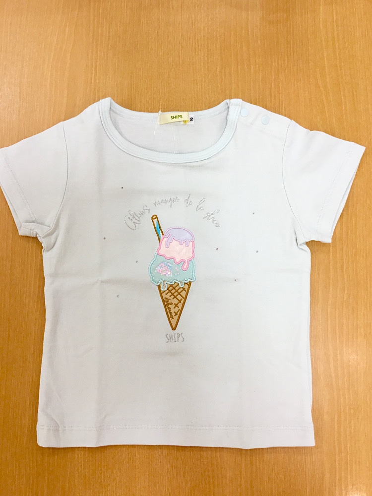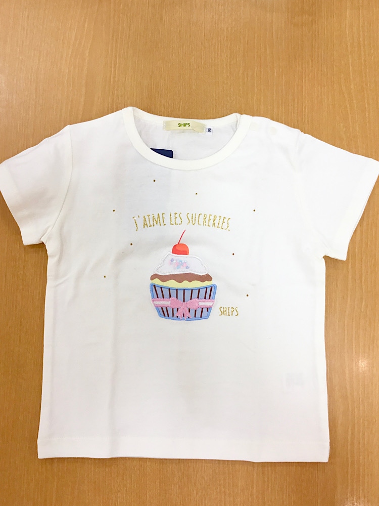 ボリュームのあるスカートで女の子らしいコーデになります。 Tシャツの刺繍をよく見るとキラキラ✨かわいいスパンコールが中に入っていて、女の子心をくすぐるアイテムになっています♪