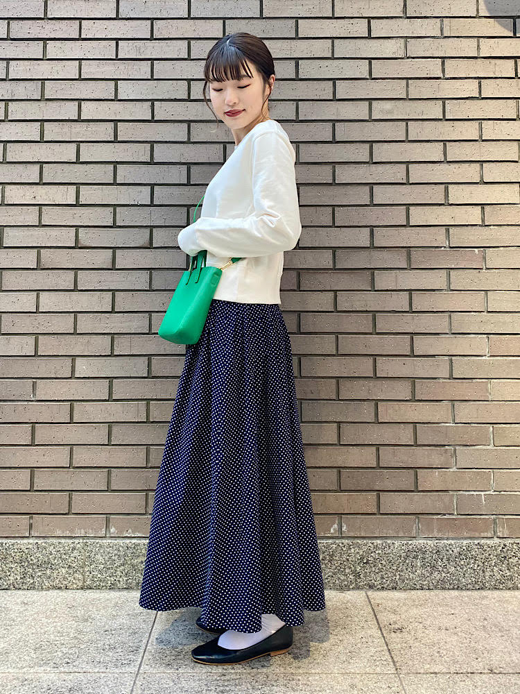 緑を差し色にしたフェミニンなモノトーンコーディネート