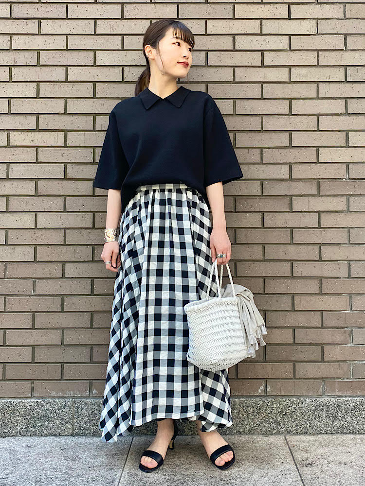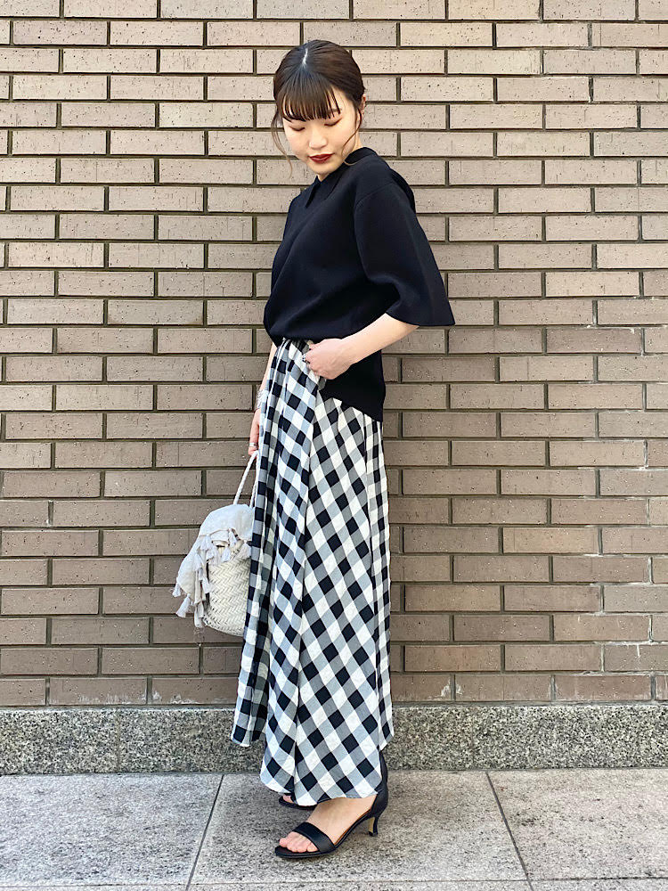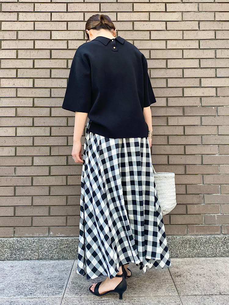 フロントとサイドでギンガムチェックがアシンメトリーに