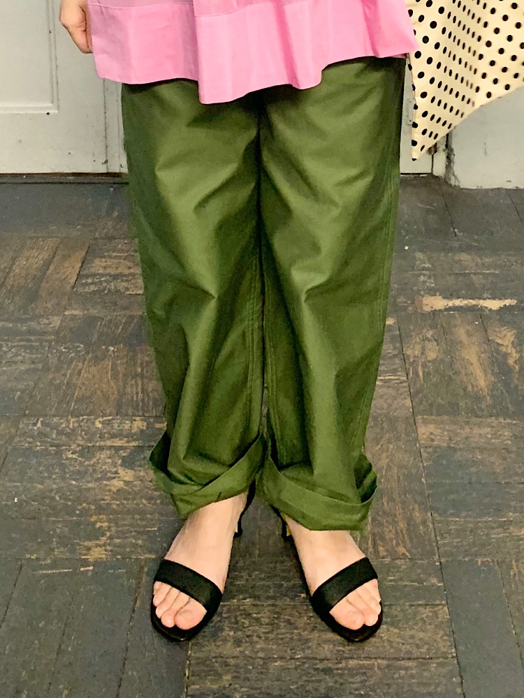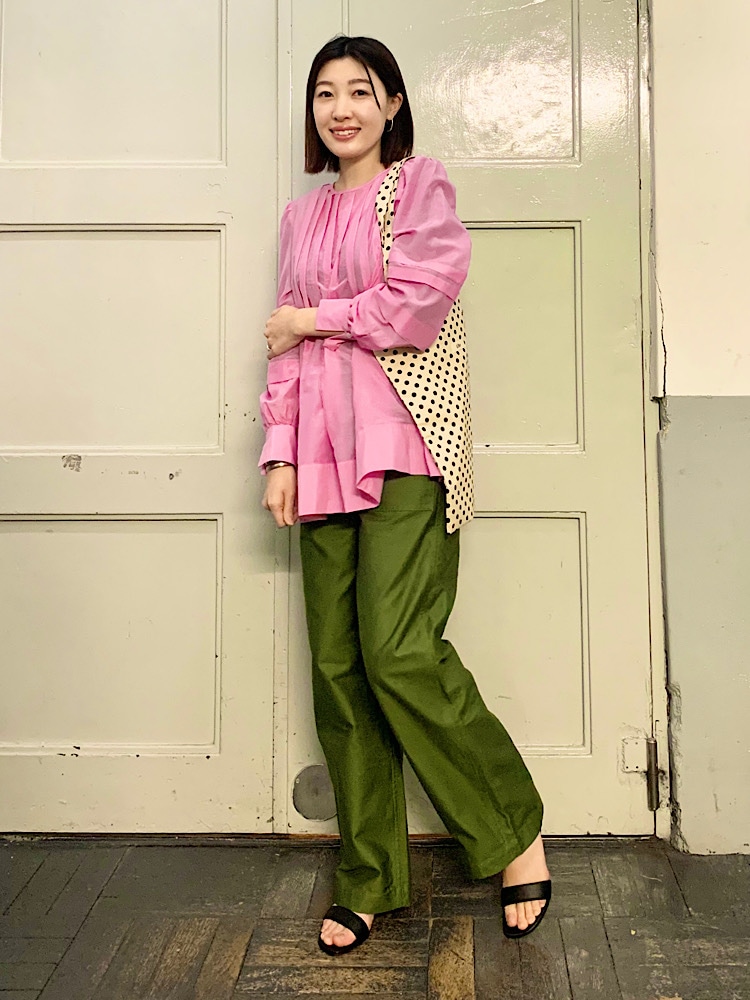 素材感・着心地:少し光沢のあるコットン100%の素材です!高級感があり大人の女性でも履きやすいと思います〇
