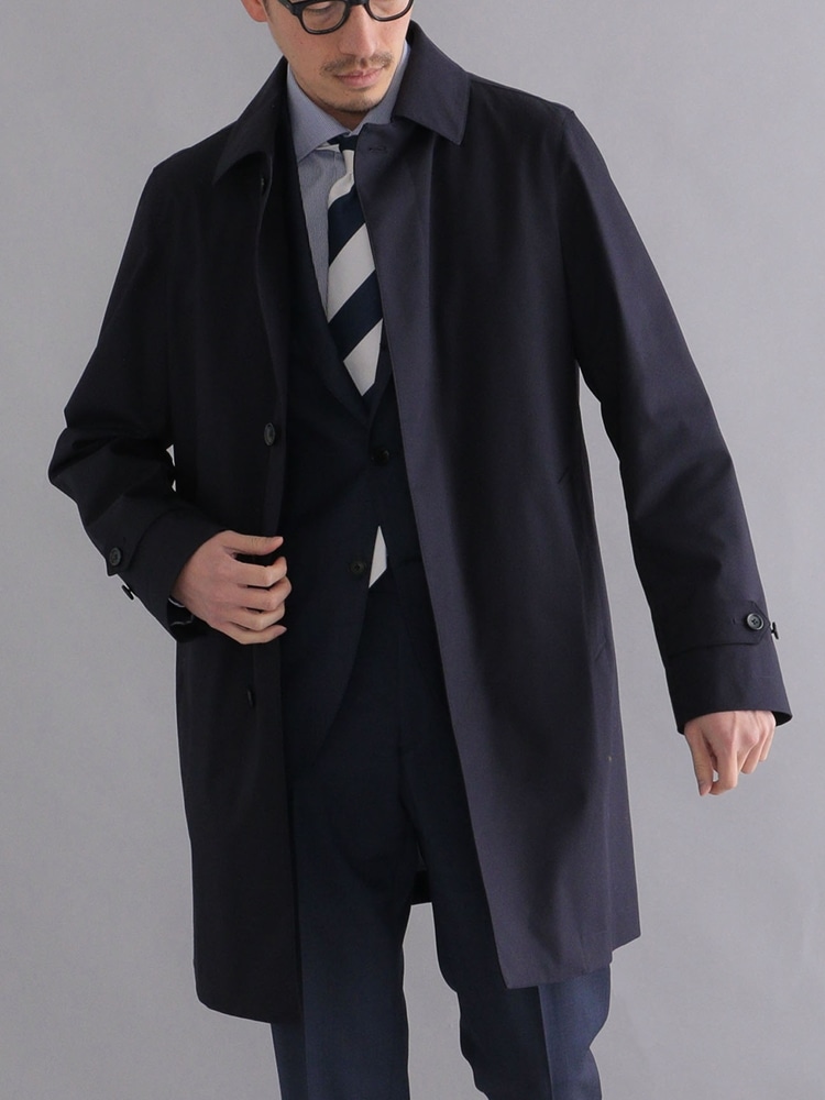ビジネスに最適なオールシーズン対応可能なステンカラーコート。
