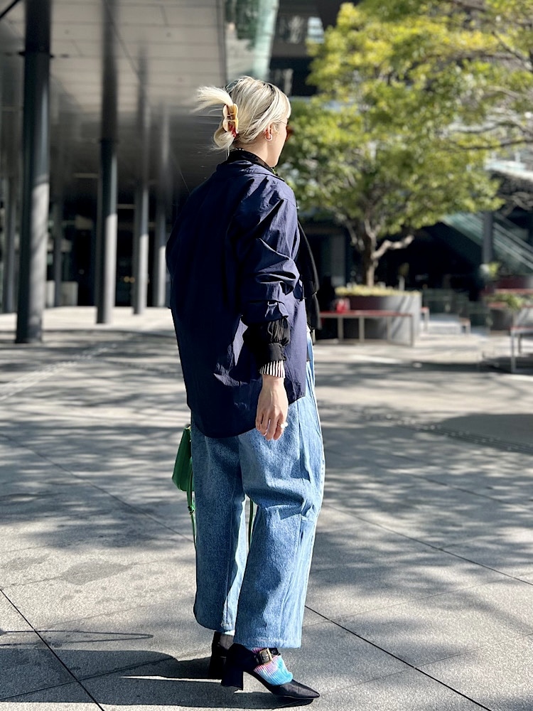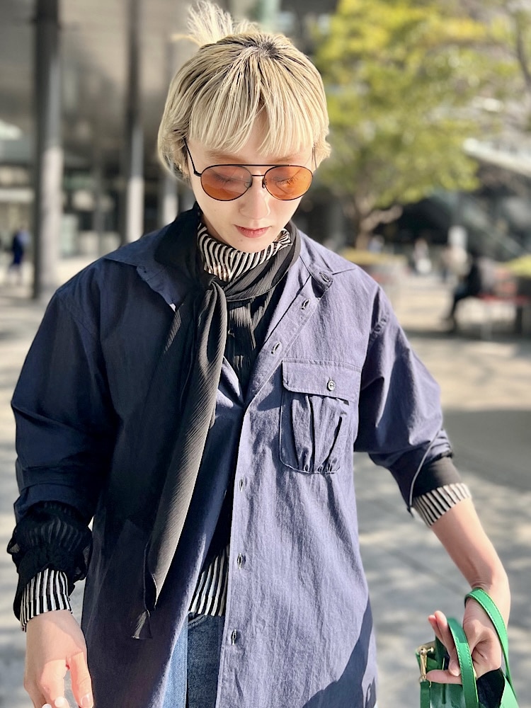 ・着こなしポイント : ややゆったりしているので中にレイヤードしやすく、白Tにさらっと1枚で合わすのもおすすめです。