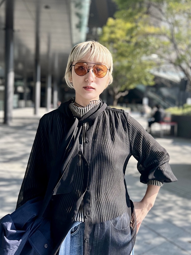 ・着こなしポイント : 首周りの襟で様々なスタイリングを楽しめます。シアー感がありますので、インナーに柄物をプラスしても可愛いですよ!