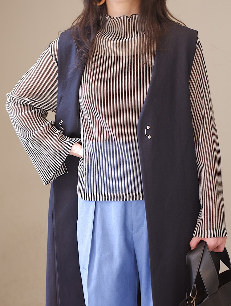 着心地:ポリエステル×麻素材の軽やかなジレ