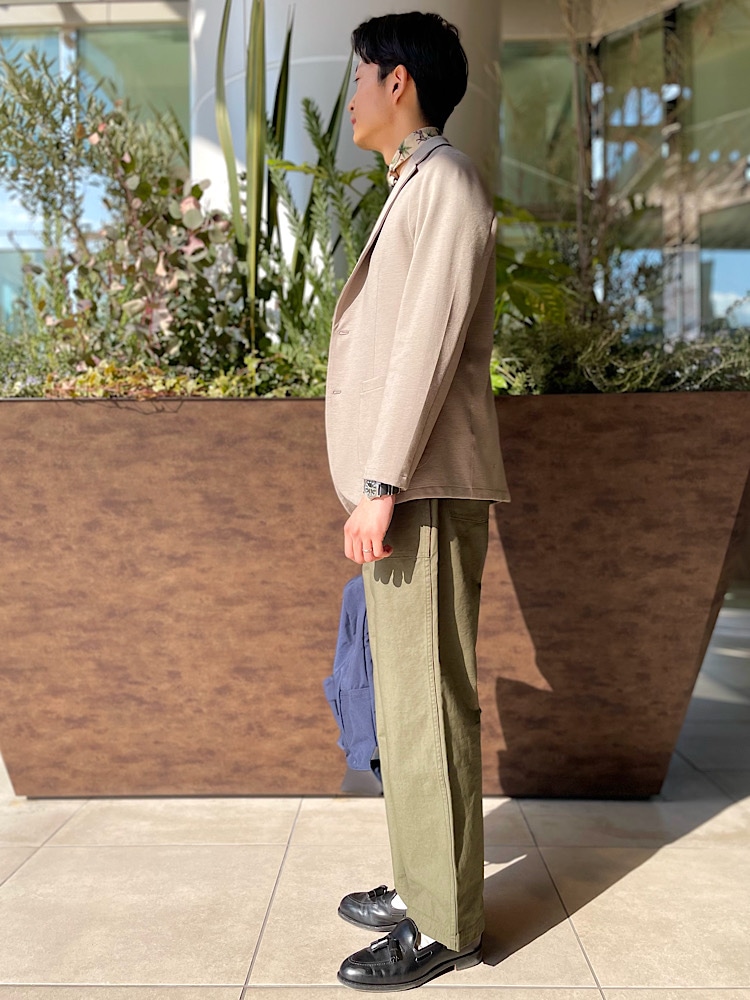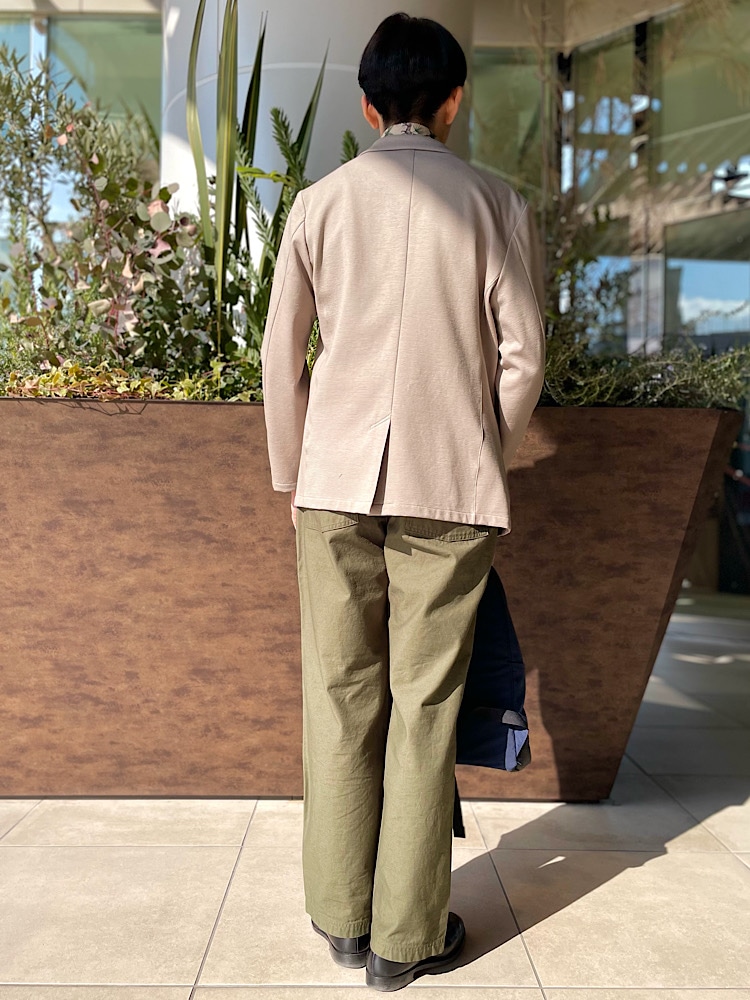 着心地:コシのあるコットン素材で、やや固めな質感です。着込んで柔らかくしていく楽しみを味わえると思います。