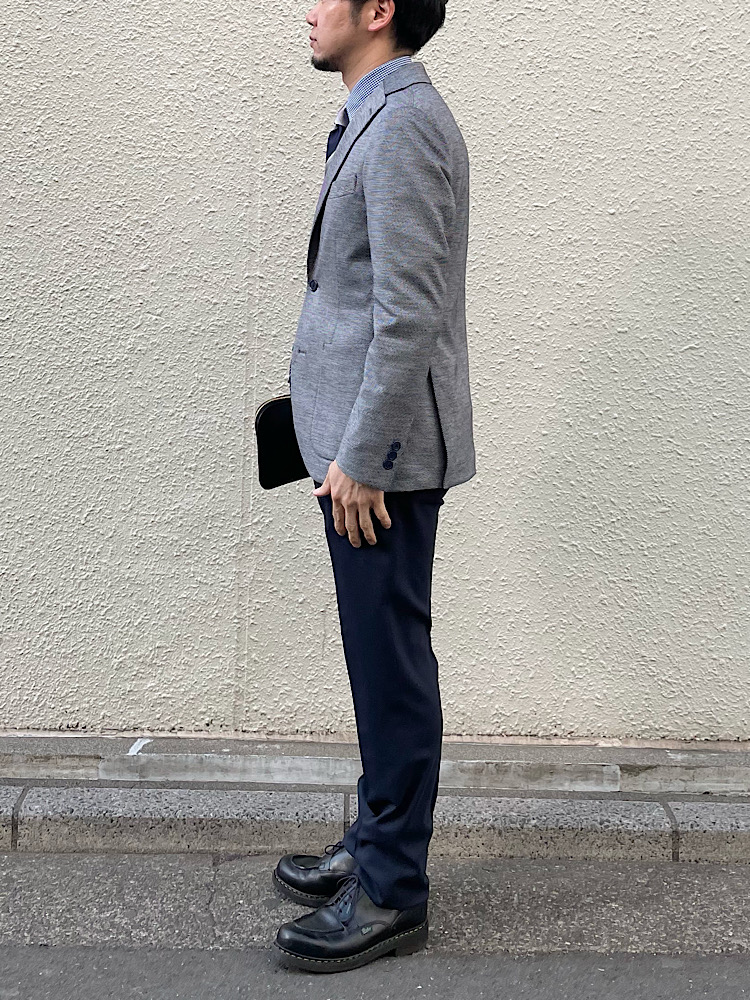 素材感/着心地:麻素材のジャケット。通気性良く軽い。