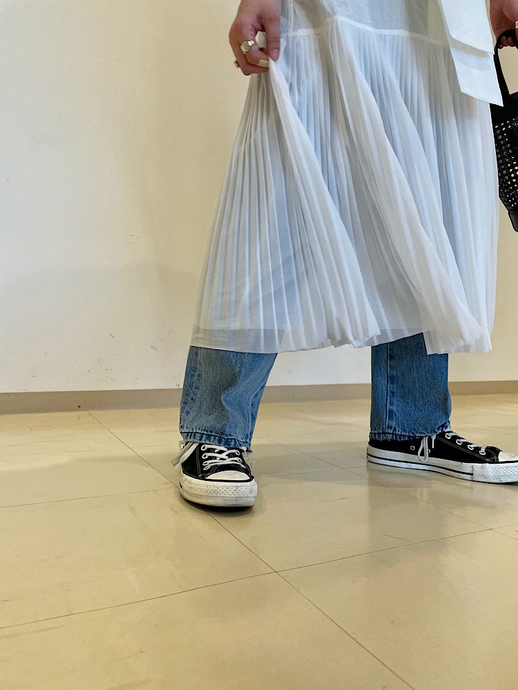 【サイズ感】着丈は長め。透け感があるので下にパンツやレギンスなどレイヤードすると◎