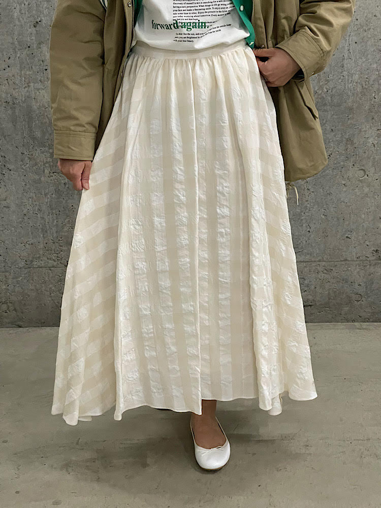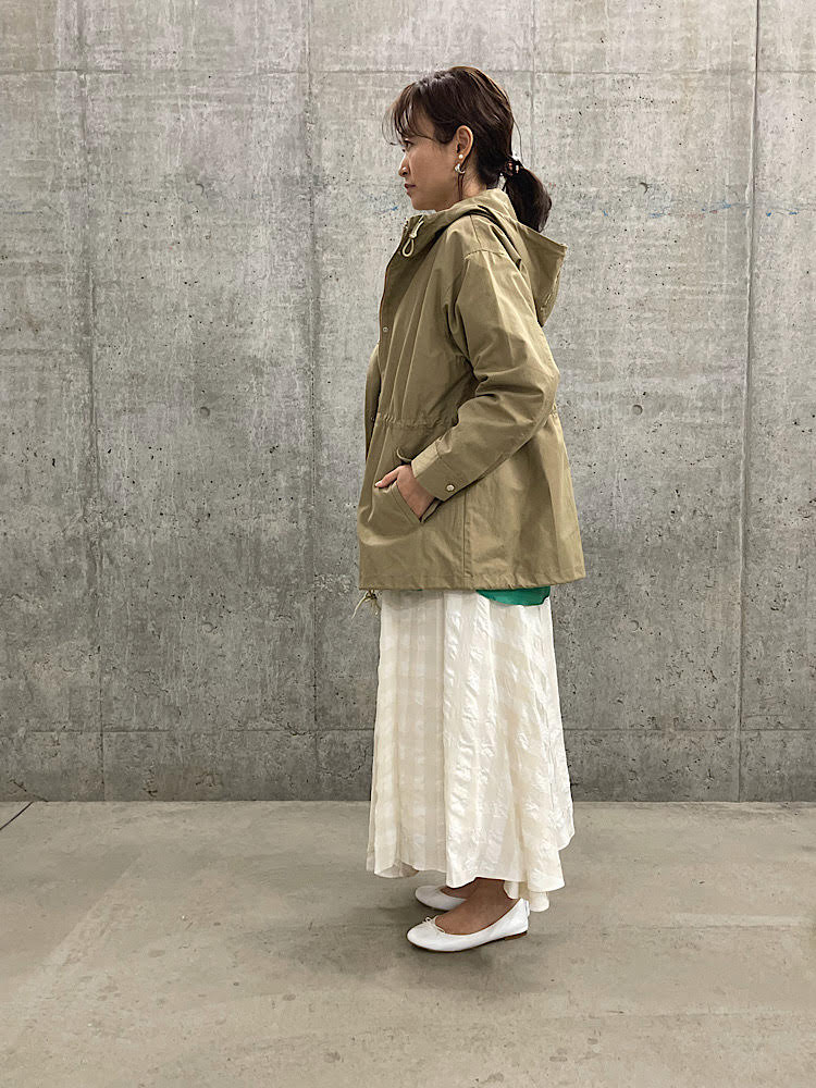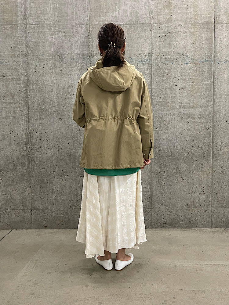 サイズ感:やや大きめです。ドローコードでギャザーを寄せてシルエット調整が出来ます。