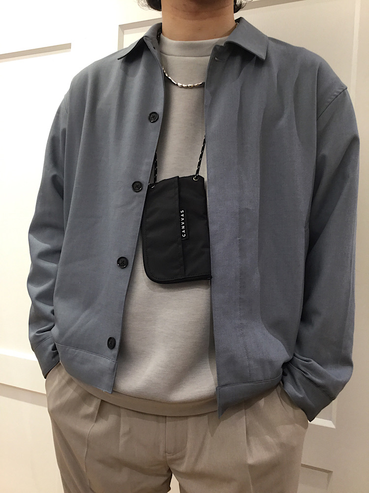 今回は春を意識して爽やかにまとめました。グレーにもライトブルーにも見える絶妙な色合いをしたショートブルゾンにペールトーンのパンツで都会的なコーディネートに!