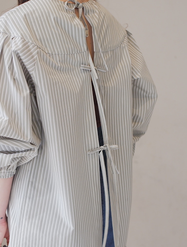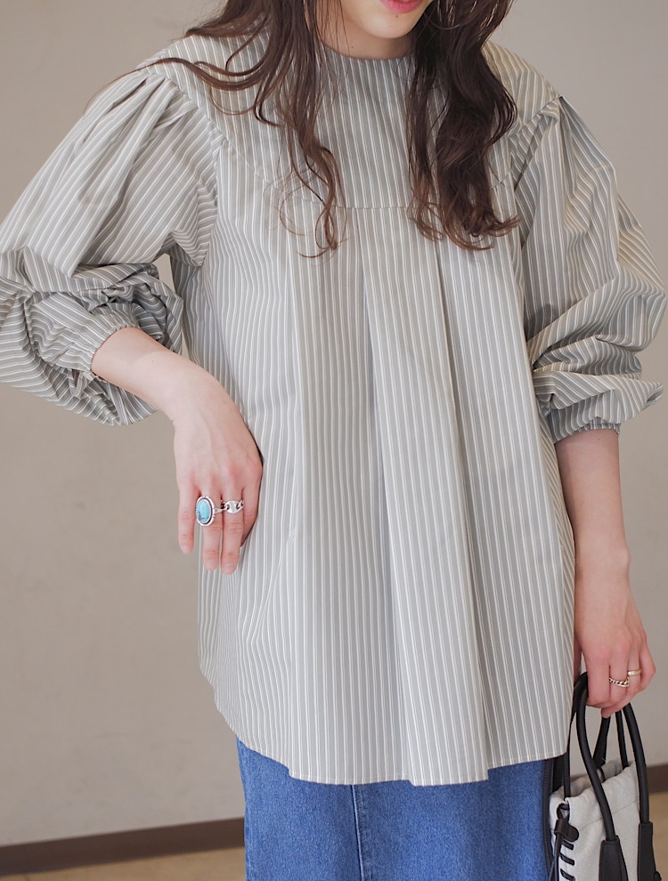 胸元の切り替え、袖口のギャザー