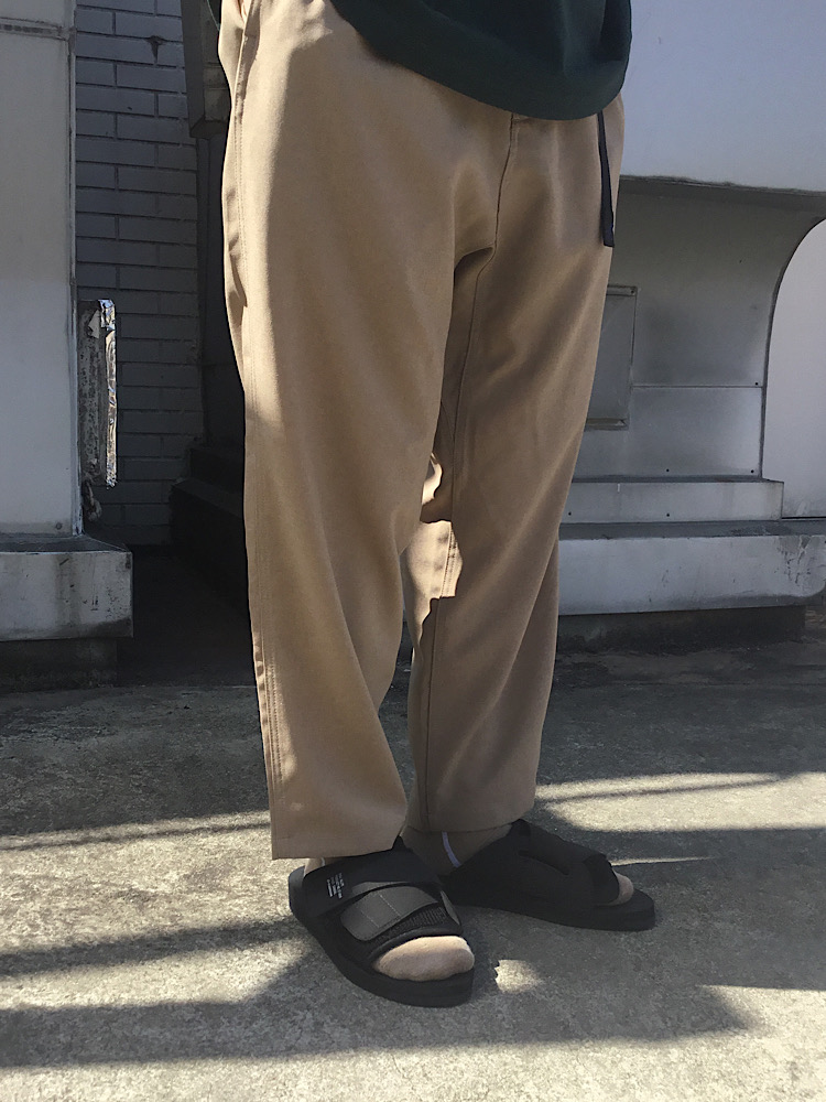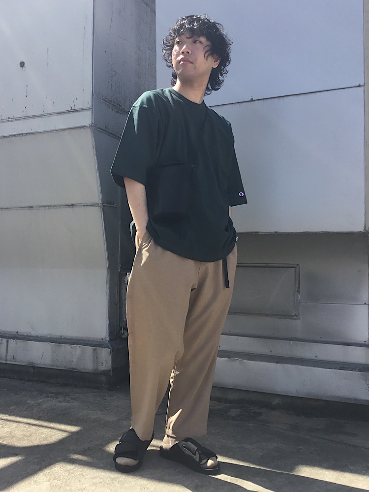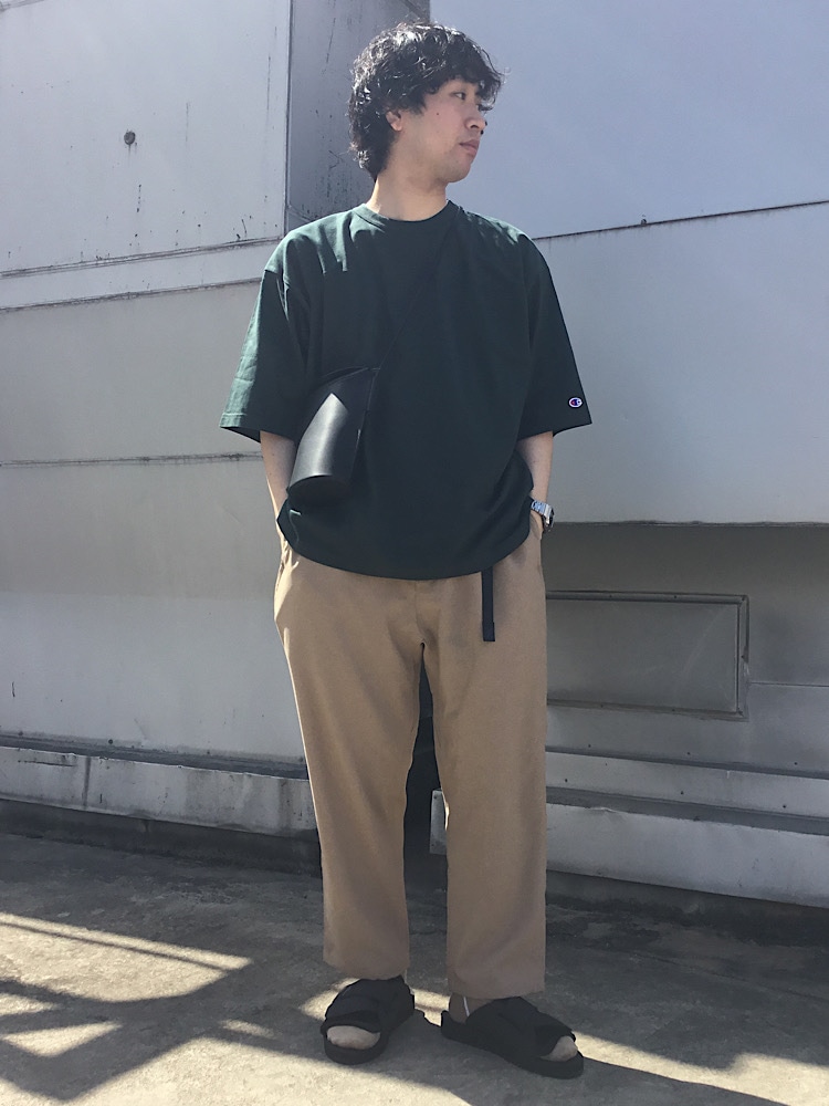 一足早く初夏に向けてany別注ChampionのフットボールTシャツにグラミチのパンツを合わせてみました!810sのALLPEサンダルは非常に履きやすいので是非お試し下さい。