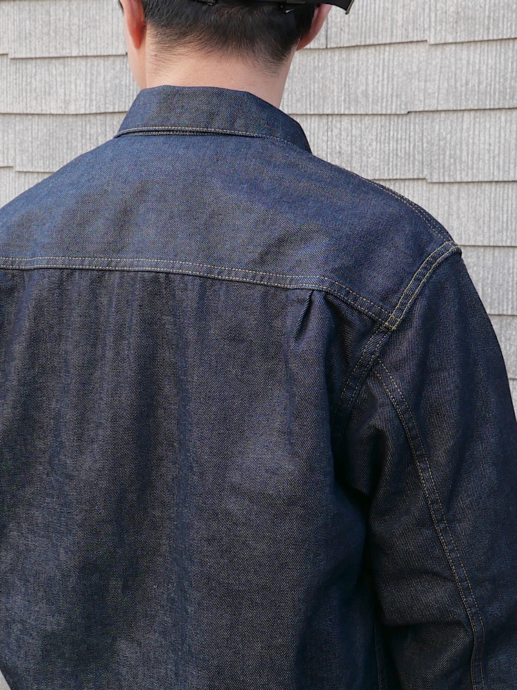 素材感/着心地:通常のデニムジャケットと比べて生地の厚みが薄めです。柔らかいので着心地が良いです。