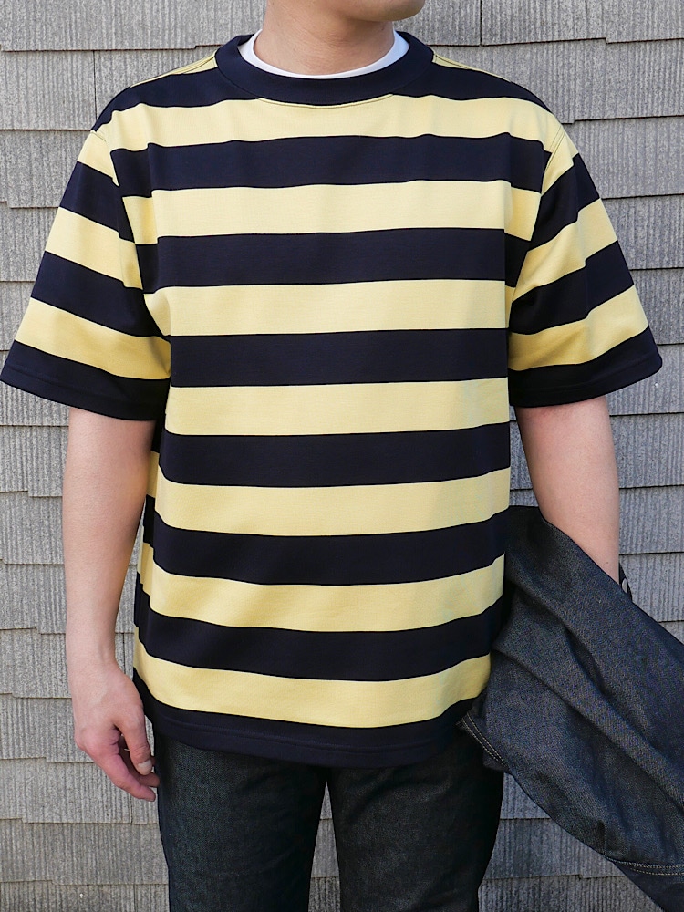 素材感/着心地:光沢感とヌメリ感がありワンランク上のボーダーTシャツとなっております。真夏は是非1枚で頂きたいアイテムとなっております。