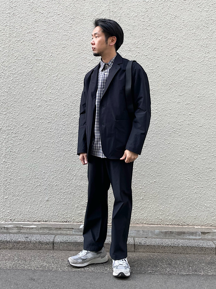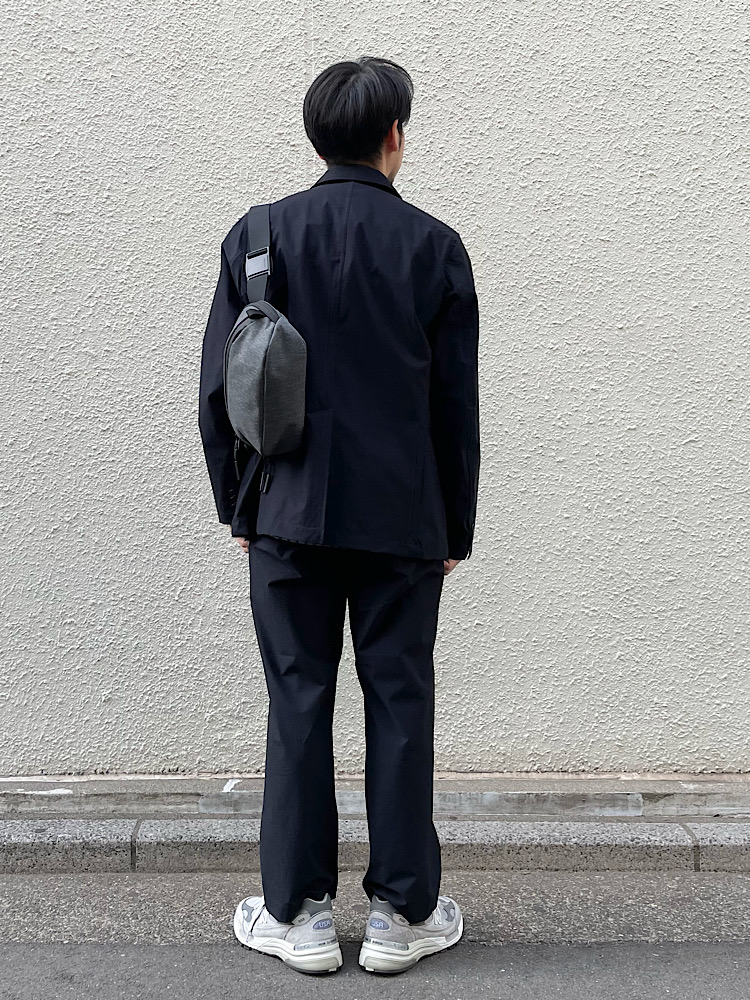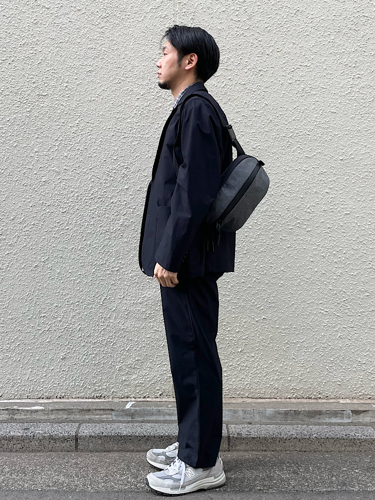 素材感/着心地:ジャケットと同素材。程良い張りがあり穿きやすい。