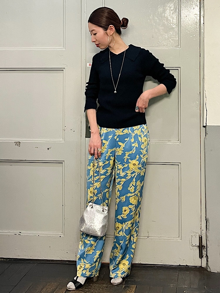 テイスト違いのアイテムでミックススタイルを。