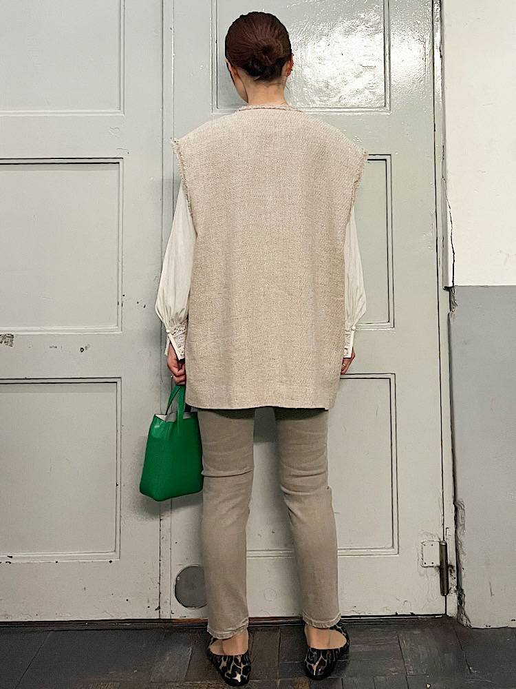 素材感・着心地:麻がメインで軽く3シーズン着て頂けます。