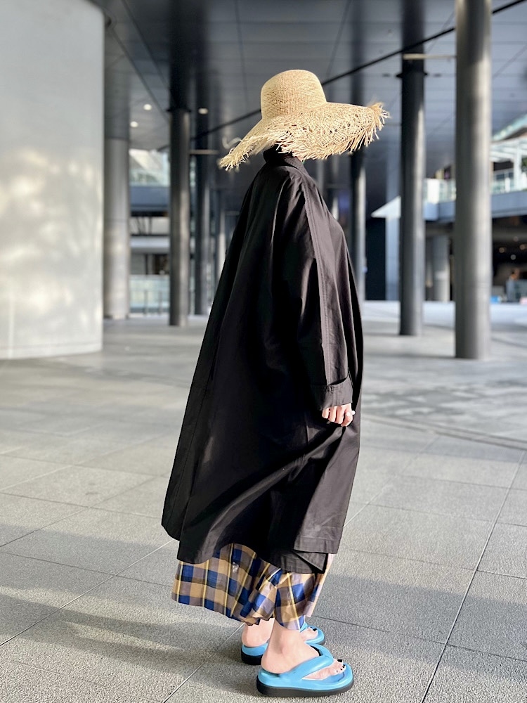 ・着こなしポイント : 裾にかけてAラインになっているのでワンピースの様にきても