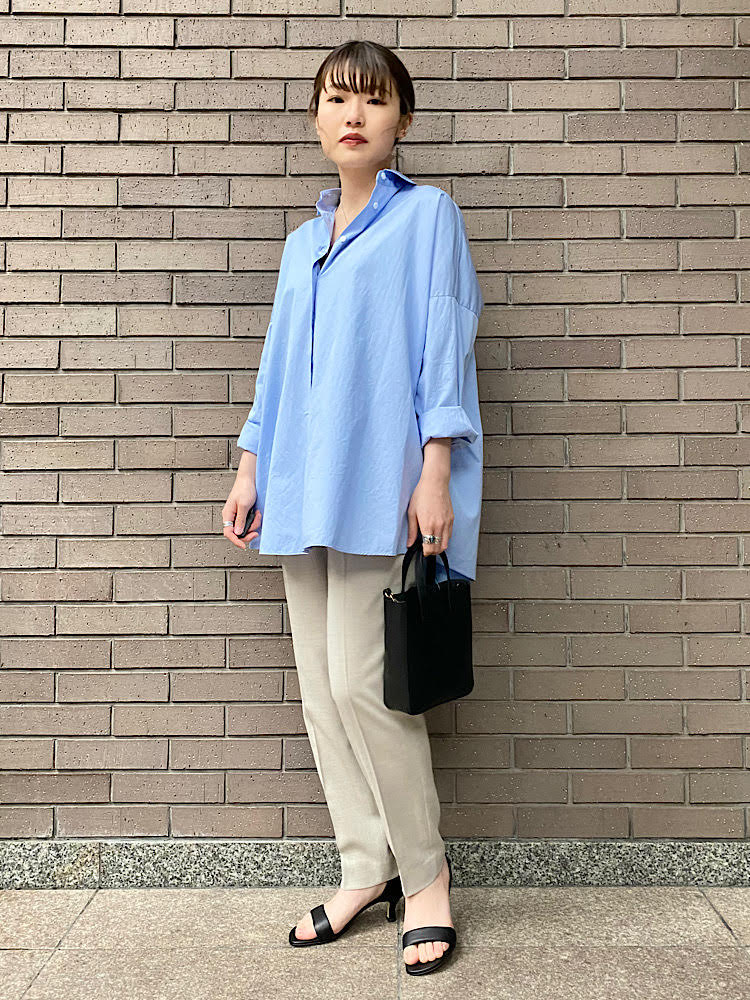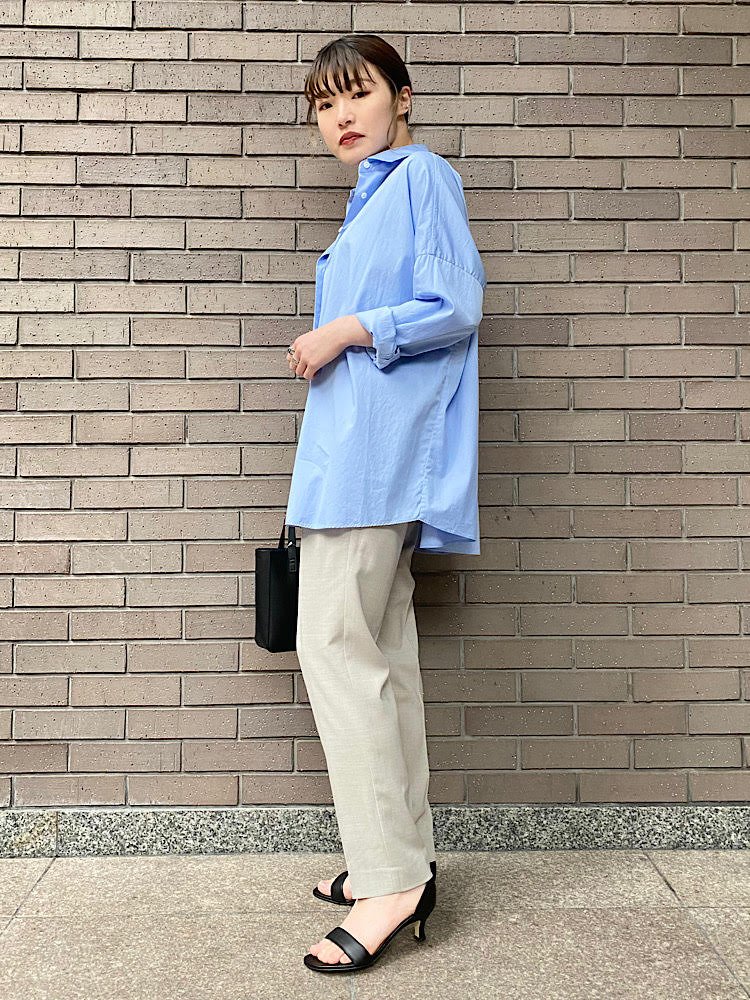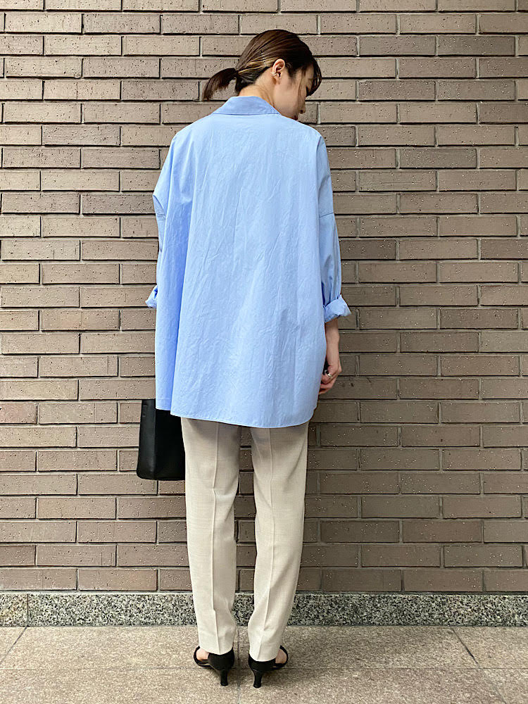 BIGシャツとテーパードパンツでシルエットにメリハリを。