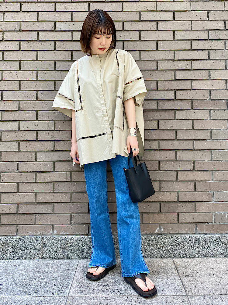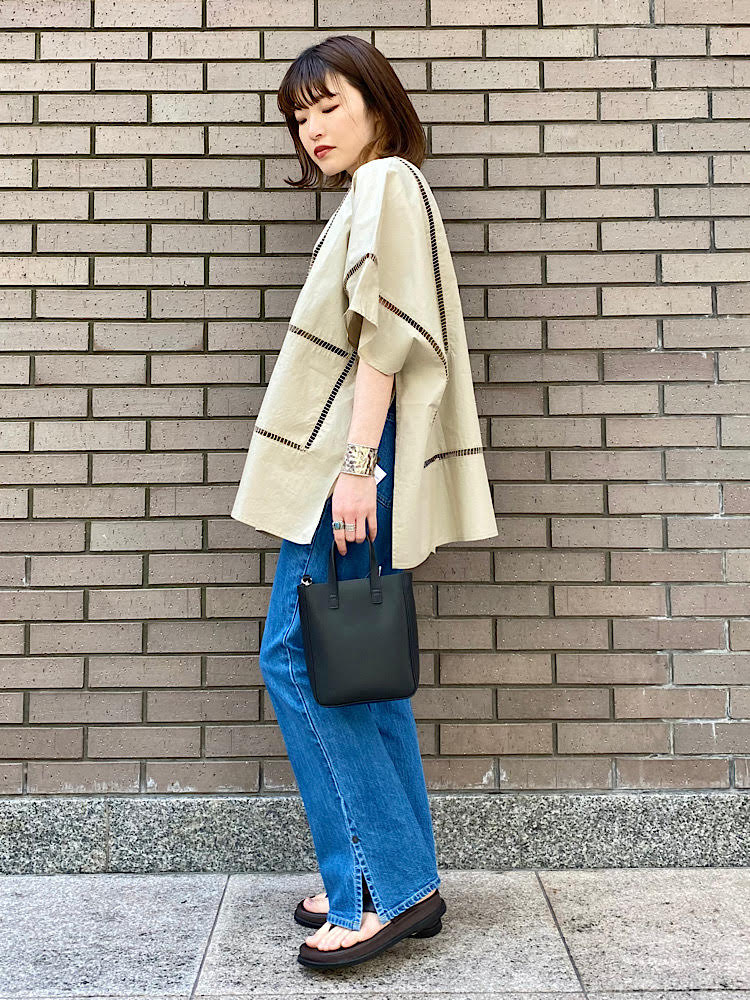 BENCH MARKING別注のブラウスにデニムを合わせ、