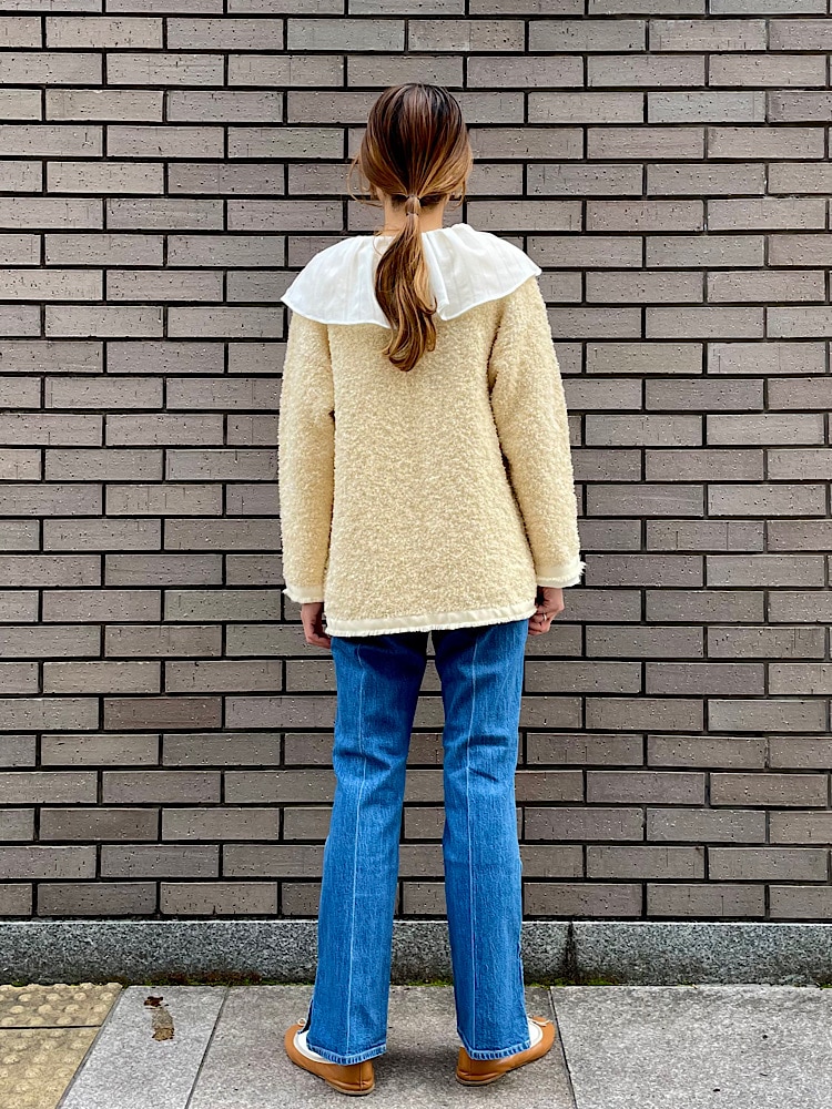 素材感・着心地:ナイロン/ポリエステルの柔らかい素材。ニットジャケットなので、軽く肩周りの窮屈感もありません。春はアウター感覚で着用できます