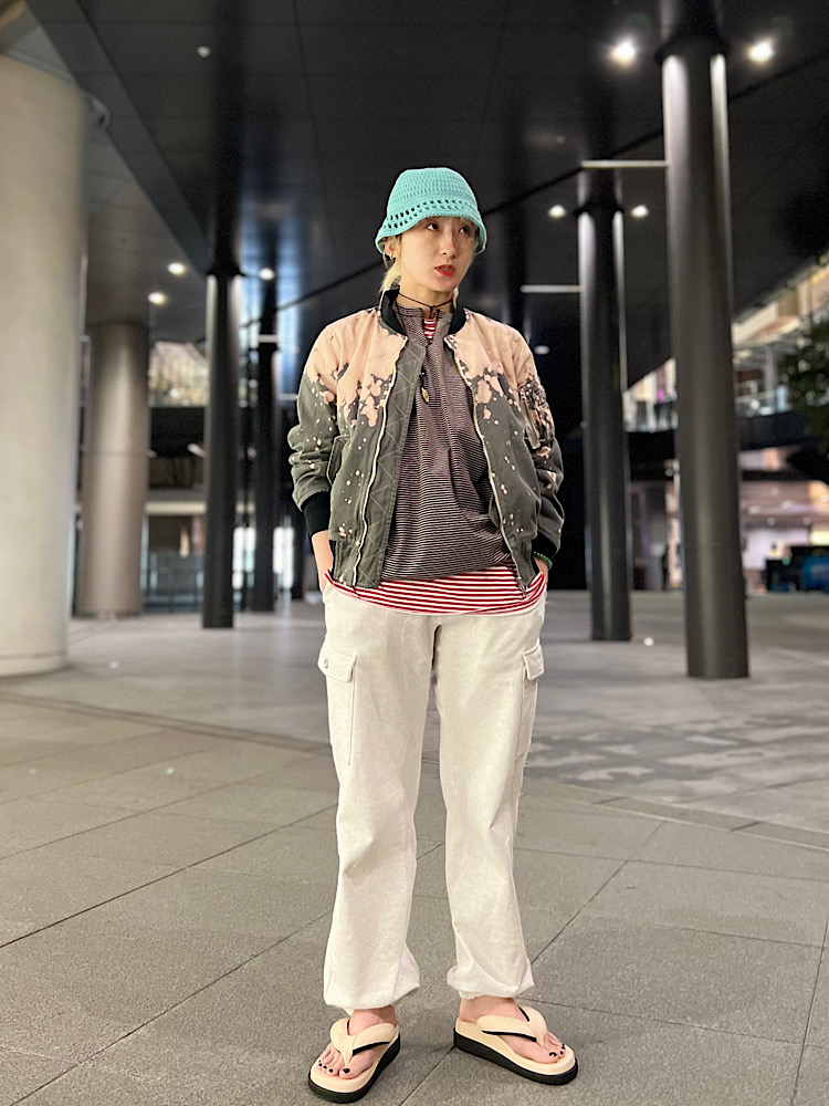 ・着こなしポイント : タイダイ柄ですが中にボーダーやカラーのインナーをいれても合わせやすく、馴染みやすいジャケットです