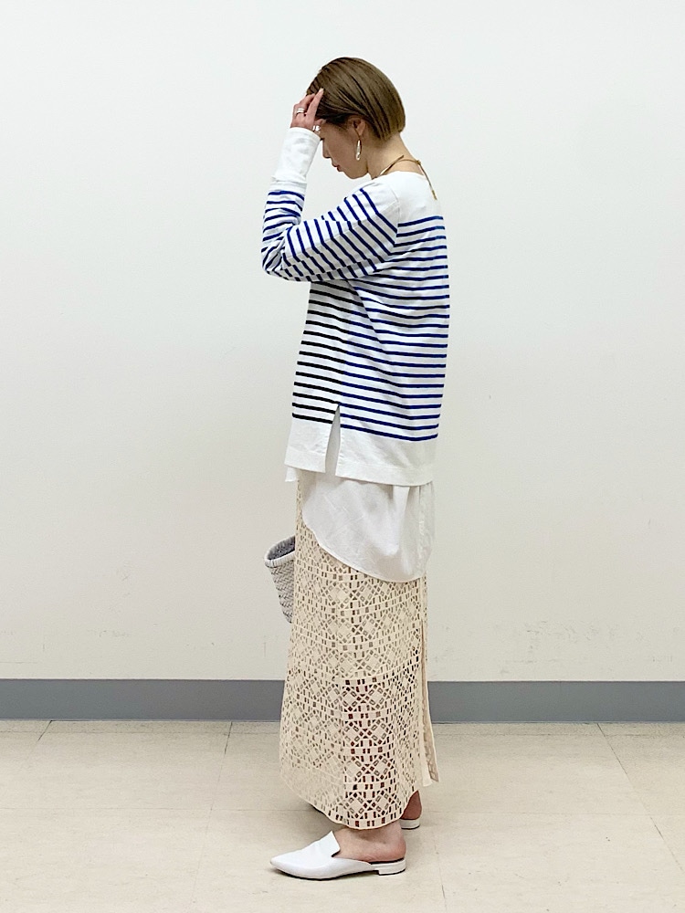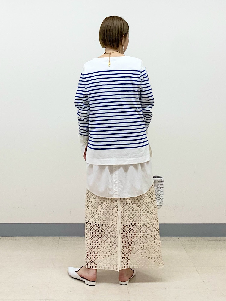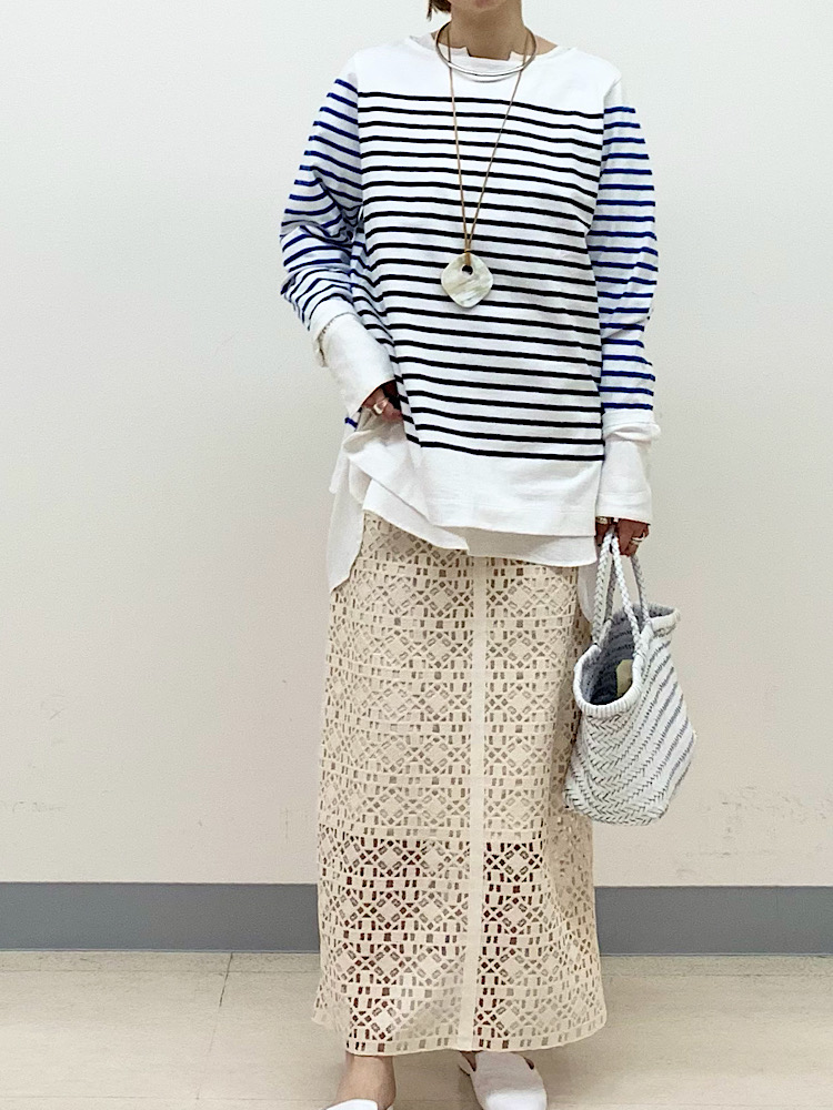 ボーダーとレースの組み合わせも、白を挟むことでうるさくならず、すっきり見せられます。