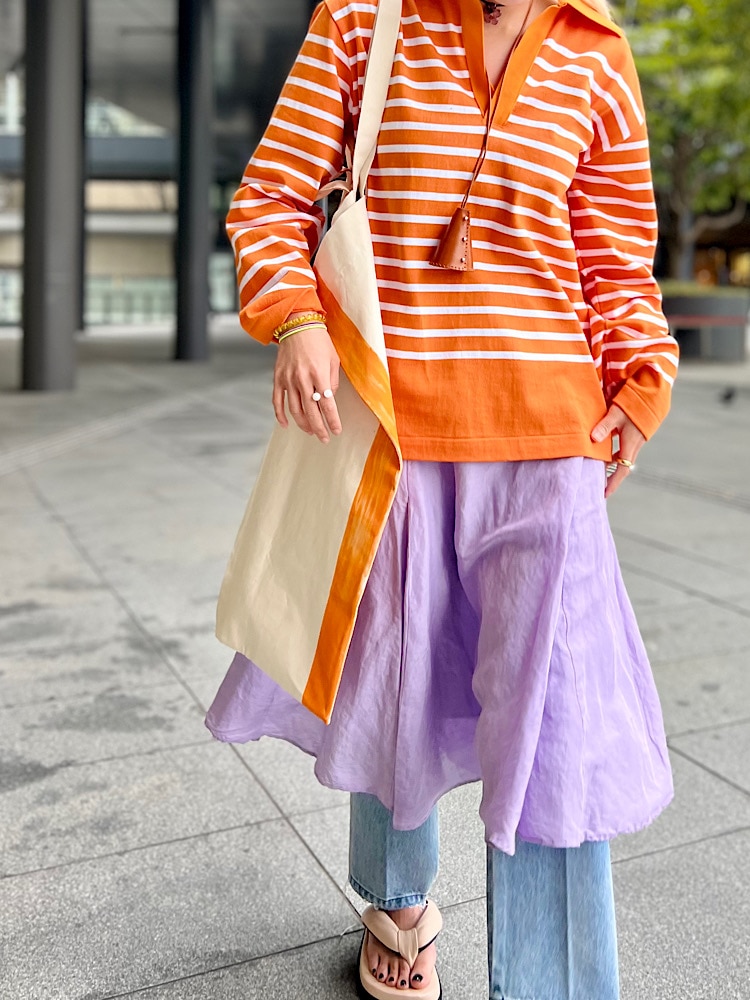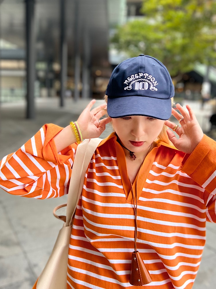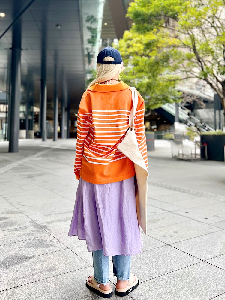 ・着こなしポイント : 首元の開きを活かし、ネックレスやチョーカーを合わせるとボーダーでもカジュアルすぎず着用可能です