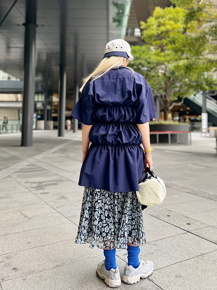 ・着こなしポイント : 柄物に挑戦という方も、トップスを少し着丈の長いものに変更したり、似寄りのカラーをプラスすることでぐんと合わせやすくなりますよ!