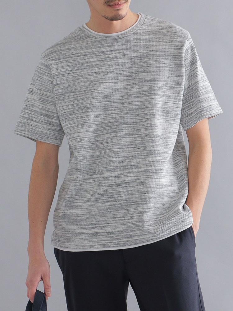 SHIPSの定番ワッフルフェイクレイヤードを使用したきれいめなスタイリング。
