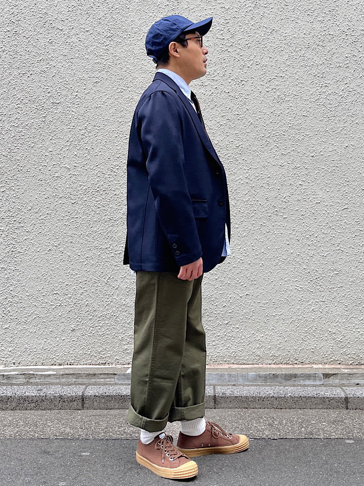 素材感/着心地:裏地が無いので幅広いシーズンでお使い頂けます。デザインが堅苦しく無いので、Tシャツやスェットで合わせるのもオススメです。