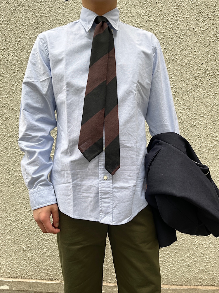素材感/着心地:オックス生地なので、洗いざらしで着て頂くのもオススメです。襟が大きめなのでナロータイなどを巻いて頂くことも出来ます。