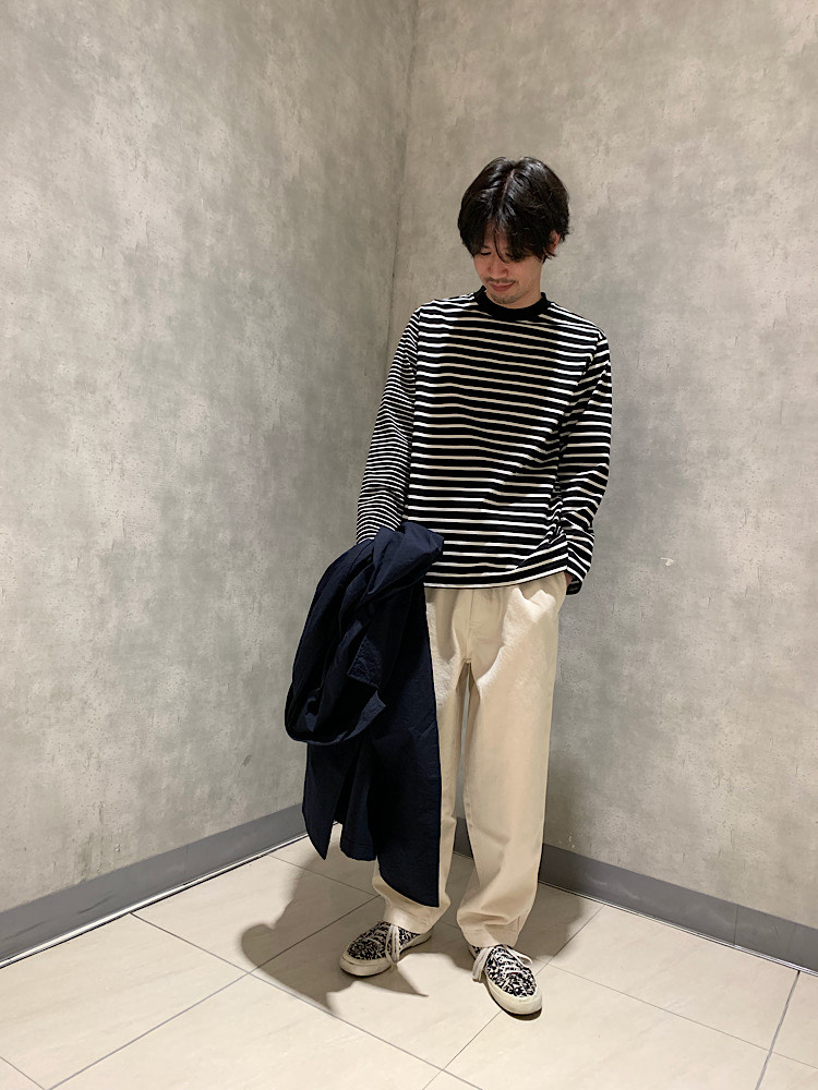 サイズ感:ウエストは絞れる仕様だが、サイズ感は大き目。シルエットも太めだが、程よいテイパードでキレイに履ける。