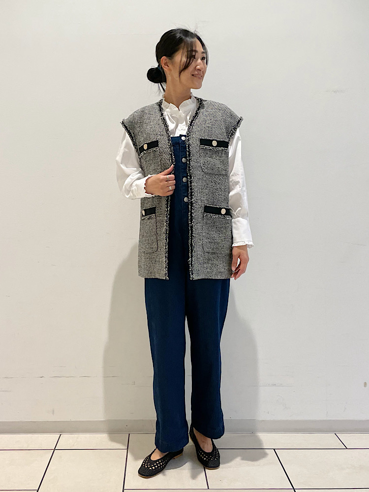 着心地:軽めのツイード生地、一枚羽織るだけで今シーズンのトレンドに。