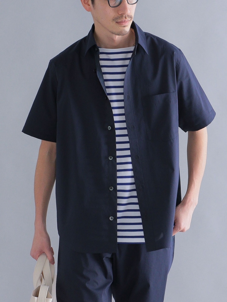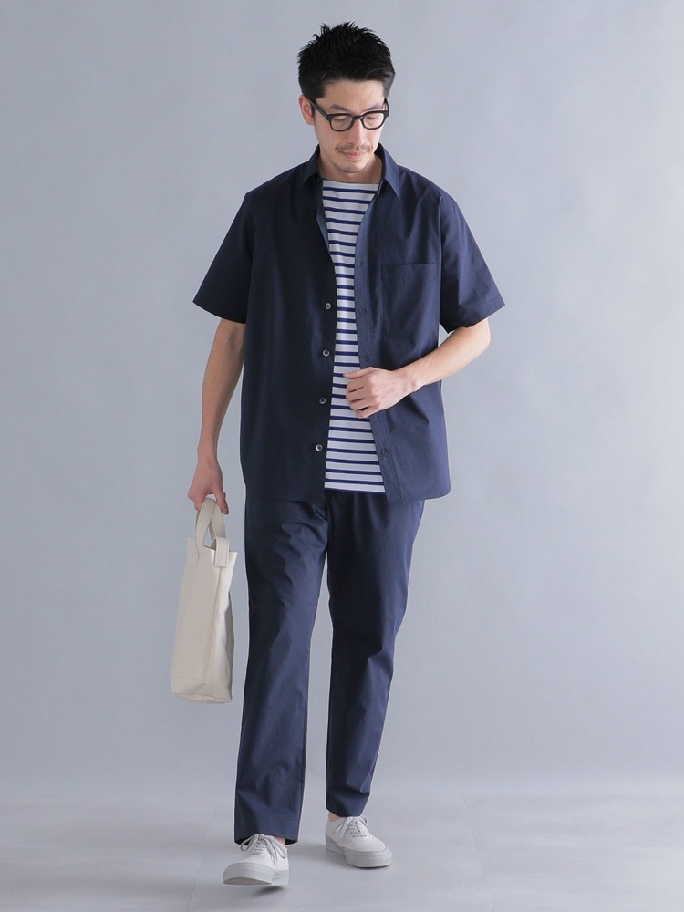 機能性の高い超軽量素材のセットアップを使用した爽やかなスタイリング。