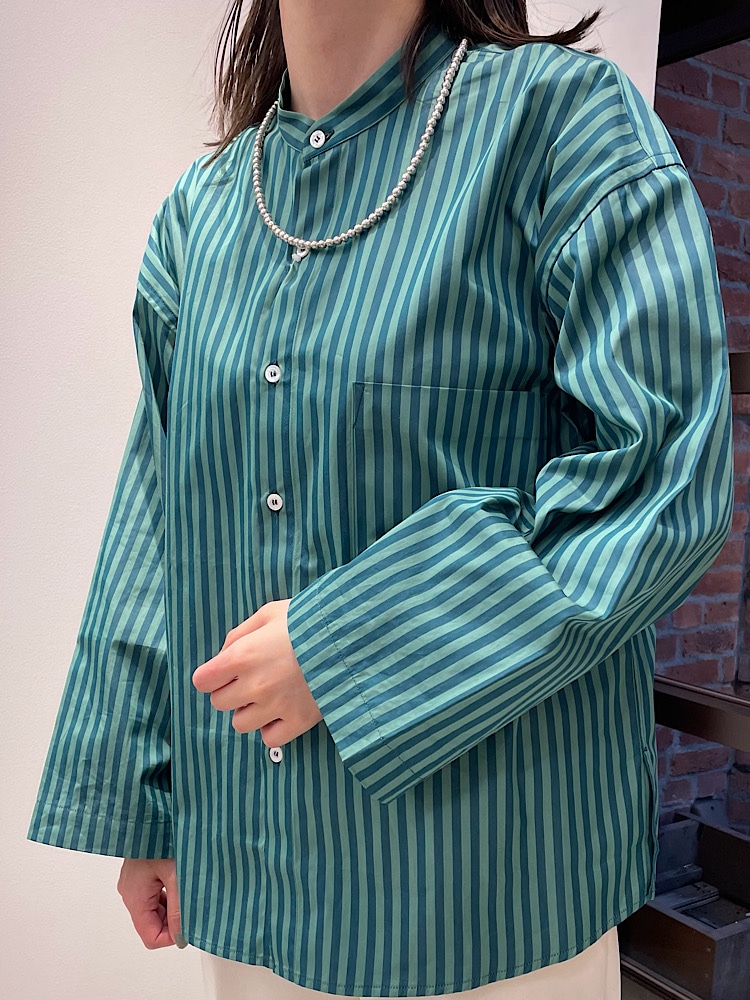 着心地:上質な光沢感があり、一枚でも決まるシャツです。軽やかで肌触りの良いコットン素材です。